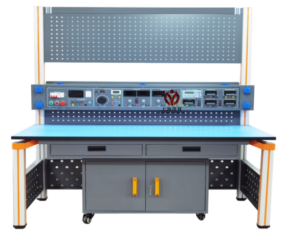 該裝置主要由實訓(xùn)桌、主機箱、儀器工作電源箱、實訓(xùn)掛箱、網(wǎng)孔板、實訓(xùn)元器件組成。學(xué)生根據(jù)實訓(xùn)線路進行元器件的合理布局,安裝、接線全部由學(xué)生自行完成,接近工業(yè)現(xiàn)場,能完成電工基礎(chǔ)電路,電機控制線路,照明配電的模擬操作,可完成PLC可編程、變頻器、觸摸屏綜合應(yīng)用線路,電子技術(shù)應(yīng)用電路的綜合實訓(xùn)等。通過一系列項目實訓(xùn)培養(yǎng)學(xué)生動手能力和實操技能。實訓(xùn)項目可自行確定,根據(jù)所選的項目選擇相應(yīng)的元器件。該裝置也可作為電工考工的考核設(shè)備。