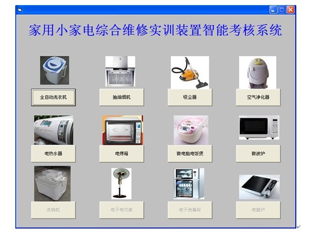 多功能家用電子電器控制綜合實(shí)訓(xùn)裝置是根據(jù)教育行業(yè)標(biāo)準(zhǔn)-電子技術(shù)應(yīng)用專業(yè)儀器設(shè)備配備標(biāo)準(zhǔn)》及勞動(dòng)和社會(huì)保障部發(fā)布的《家用電子產(chǎn)品維修工.職業(yè)技能實(shí)訓(xùn)和鑒定設(shè)備技術(shù)規(guī)范》的教學(xué)和實(shí)訓(xùn)要求而研制的。適合中高職院校的應(yīng)用電子技術(shù)、家用電器維修、電子電器應(yīng)用與維修專業(yè)等專業(yè)的家用電子產(chǎn)品原理與維修的實(shí)訓(xùn)教學(xué)。本裝置包括電話煲、全自動(dòng)洗衣機(jī)、抽油煙機(jī)、吸塵器、空氣凈化器、電熱水器、電烤箱、電飯煲、微波爐等故障分析與判斷方法,能使學(xué)生更全面的了解和掌握家用電器的工作原理和維修技能。