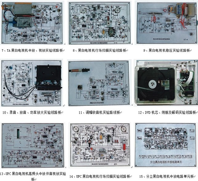 3、3號板:黑白電視機(jī),場輸出電路單元,行輸出電路單元,同步分離行振蕩電路單元,視頻放大電路單元