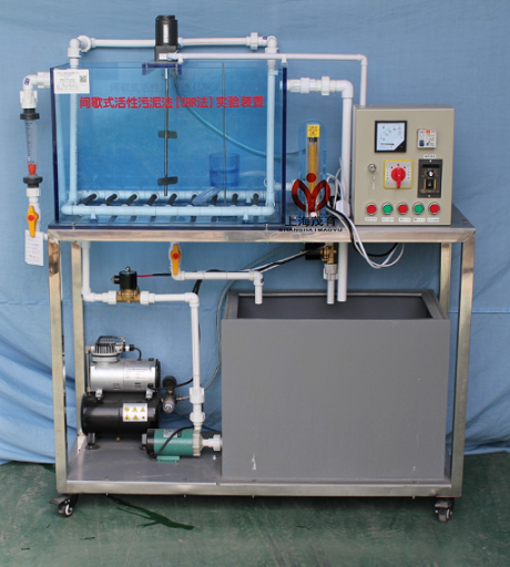 間歇式活性污泥處理系統(tǒng)又稱序批式活性污泥處理系統(tǒng),英文簡稱SBR工藝(Sequencing Batch Reactor)。本工藝最主要的特征是集有機(jī)污染物降解與混合液沉淀于一體,與連接式活性污泥法相比較,工藝組成簡單,勿需設(shè)污泥回流設(shè)備,不設(shè)二次沉淀池,一般情況下,不產(chǎn)生污泥膨脹現(xiàn)象,在單一的曝氣池內(nèi)能夠進(jìn)行脫氮和除磷反應(yīng),易于自動(dòng)控制,處理水水質(zhì)好。本裝置是SBR工藝的教學(xué)演示和動(dòng)態(tài)實(shí)驗(yàn)設(shè)備。通過本實(shí)驗(yàn)希望達(dá)到以下目的: