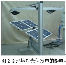 2、環(huán)境對光伏發(fā)電的影響:將太陽能電池板遮擋0%、電池板遮擋25%、電池板遮擋50%、電池板遮擋100%、晨日燈開啟、午日燈開啟、晚日燈開啟和自然光照射,觀察電池板的電壓電流變化,了解環(huán)境對光伏發(fā)電的影響。如圖2-2所示: