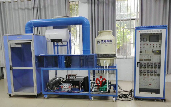 (5)中央空調(diào)制冷、制熱循環(huán)輸送管路:用最新型色鋁塑管以及銅件連接,并標(biāo)有明顯的走向標(biāo)志。輸送管路經(jīng)電磁閥、風(fēng)機(jī)盤(pán)管輸送給模擬房間或模擬風(fēng)管、根據(jù)所需調(diào)節(jié)風(fēng)速開(kāi)關(guān)或風(fēng)量。