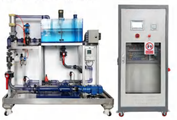 泵管閥系統(tǒng):是泵站系統(tǒng)的主體單元,通過水泵、管道和閥門的操控,可實現(xiàn)管道流動阻力、管件識辨、離心泵特性、泵拆裝、流量計安裝和四大化工參量的安裝、檢測、顯示等實訓。主要不銹鋼底座,包括水箱、螺杄泵、計量泵、空壓機、攪拌機、氣動刀閘閥、氣動蝶閥、電動調節(jié)閥、安全閥、過濾器、隔膜閥、球閥、蝶閥壓力傳感器、電磁流量計、超聲波物位儀、儲氣罐、起源處理元件、電氣控制柜、通斷開關、急停按鈕、多功能電力表、觸摸屏、電流互感器、交換機、交流接觸器、開關電源等,配備拆裝工具等組成。