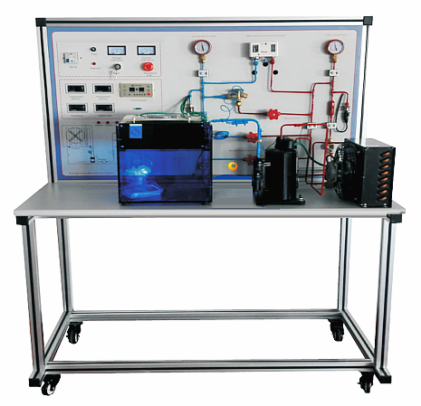 空調(diào)器原理實訓(xùn)裝置-是敞開式設(shè)計,安裝有制冷管路設(shè)備,配各種電路原理圖實訓(xùn)板,并將電路所需的電器元件安裝在實訓(xùn)板上,學(xué)生可根據(jù)電路原理圖的要求進行制冷電路的接線實訓(xùn)、制冷回路相關(guān)指示數(shù)據(jù)的分析、制冷回路常見故障分析等。窗式空調(diào)電氣控制線路的實際工業(yè)用電器,形象直觀,可靠性好,使用壽命長, 可自行連接線路,并任意設(shè)置故障點。適用于技工院校、職業(yè)學(xué)校作為制冷基本技能的實訓(xùn)。