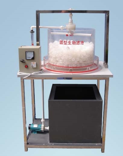 4、生物濾池1套、透明有機玻璃材質、壁厚8mm,Ø 400×400mm;(含聚丙烯塑料球1批、布水器1套、)、