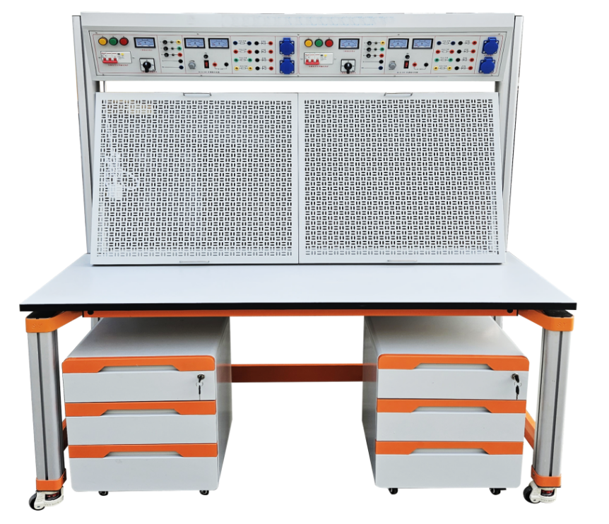 本實(shí)訓(xùn)臺(tái)由實(shí)訓(xùn)屏(內(nèi)置電源)、實(shí)訓(xùn)桌、實(shí)訓(xùn)儲(chǔ)物柜三大部分組成。