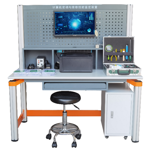 4、操作臺(tái)底部按照工具掛板結(jié)構(gòu)設(shè)計(jì),配置顯示器固定裝置,能夠調(diào)整顯示器高度和傾角,方便學(xué)生實(shí)訓(xùn)操作。也可以方便掛裝各種實(shí)操工具和實(shí)訓(xùn)導(dǎo)線。