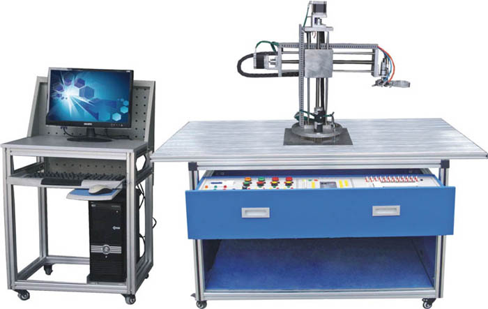 工業(yè)機(jī)械手實(shí)訓(xùn)設(shè)備為坐標(biāo)式機(jī)械手,可完成機(jī)械手旋轉(zhuǎn)、手臂垂直上下移動(dòng)、手臂水平移動(dòng),手爪旋轉(zhuǎn)四個(gè)自由度的位置精確控制。同時(shí)配置晶體管式可編程控制器,用于對(duì)整個(gè)機(jī)械手進(jìn)行復(fù)雜的位置控制。通過在該實(shí)訓(xùn)裝置上的實(shí)訓(xùn)和操作,學(xué)生可熟練掌握PLC高級(jí)指令、傳感器、旋轉(zhuǎn)編碼器、氣動(dòng)控制、步進(jìn)電機(jī)、氣動(dòng)手指、直流電機(jī)、精確機(jī)械位置傳動(dòng)等技術(shù)的綜合應(yīng)用。