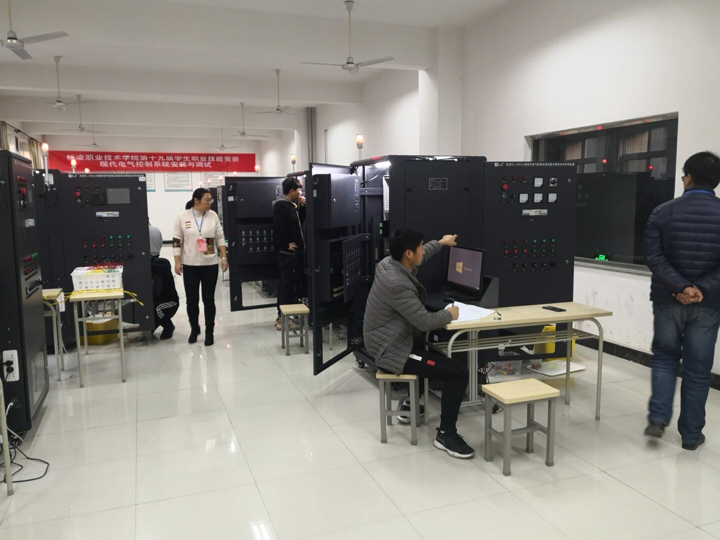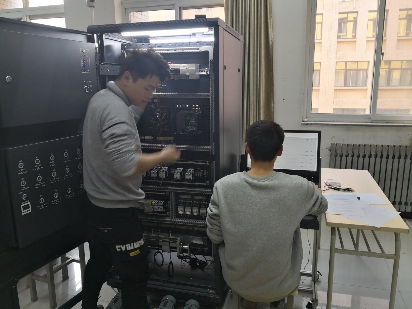是機電一體化技術(shù)、機械制造與自動化、精密醫(yī)療器械技術(shù)、制藥設備應用技術(shù)等專業(yè)進行現(xiàn)代電氣控制系統(tǒng)安裝與調(diào)試實訓實習的綜合實訓室,在電動機的多段速控制、基于模擬量的電機開環(huán)調(diào)速、步進電機、交流伺服電機的位置控制、三菱Q系列PLC與FX系列PLC網(wǎng)絡通信訓練的基礎上,完成混料罐、標簽打印、灌裝貼標簽、動車空調(diào)、立體倉庫、定長切料、平面?zhèn)}庫、自動抓棉機、伺服灌裝機、智能飼喂、太陽能制冷、自動涂裝系統(tǒng)、倉庫分揀系統(tǒng)、智能立體車庫系統(tǒng)、數(shù)控加工中心系統(tǒng)控制等綜合項目的設計實施,培養(yǎng)現(xiàn)代電氣控制系統(tǒng)安裝調(diào)試方面的綜合能力。同時,能夠為師生進行自動化技術(shù)方面的科技創(chuàng)新、技術(shù)研發(fā)及技能大賽訓練服務。本實訓臺還承擔現(xiàn)代電氣控制安裝與調(diào)試技術(shù)能大賽省賽和國賽的訓練任務以及現(xiàn)代電氣控制技術(shù)創(chuàng)新小組的日常訓練任務。