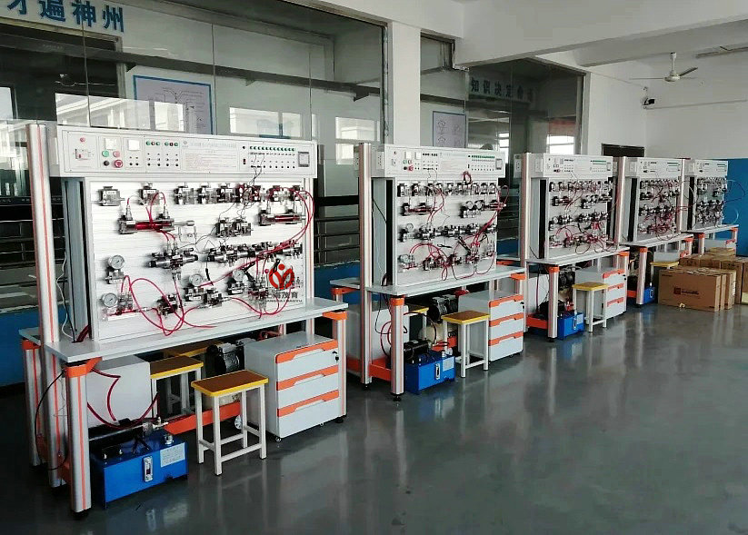 該實驗臺是根據(jù)《液壓氣動傳動技術(shù)與實訓》、《氣動控制技術(shù)》等通用教材設計而成,適用于機械類、機電類本科生課程實驗和畢業(yè)設計(論文)。采用可編程控制器(PLC)和工業(yè)氣動元件、執(zhí)行模塊為一體,除可進行常規(guī)的氣動基本控制回路實驗外,還可以進行氣動-電氣控制回路應用實驗、氣動-PLC控制回路等氣動技術(shù)課程設計。