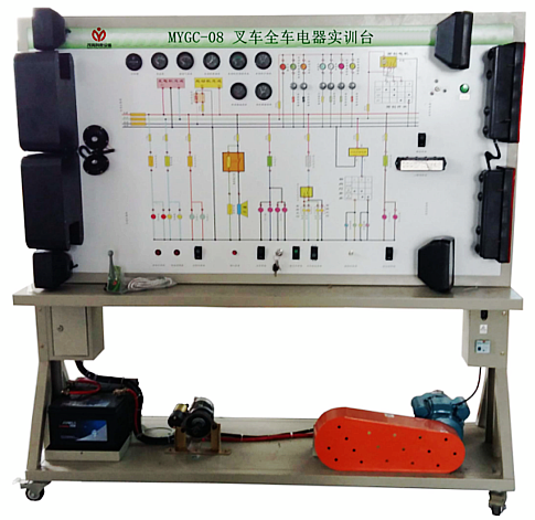 該設(shè)備采用合力3噸內(nèi)燃機(jī)叉車整車電器實(shí)物為基礎(chǔ),充分展示儀表系統(tǒng)、燈光系統(tǒng)、喇叭系統(tǒng)、發(fā)動(dòng)機(jī)電器系統(tǒng)、起動(dòng)系統(tǒng)和充電系統(tǒng)等電器各系統(tǒng)的組成結(jié)構(gòu)和工作過程。