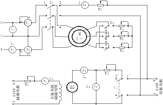 (1)按圖1接線,圖中M用編號為DQ11的三相線繞式異步電動機,額定電壓:220V,Y接法。MG用編號為DQ19的校正直流測功機。S