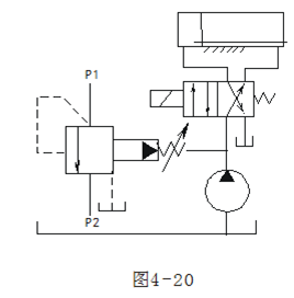 看圖4-20,先導(dǎo)溢流閥控制壓力的換向回路
