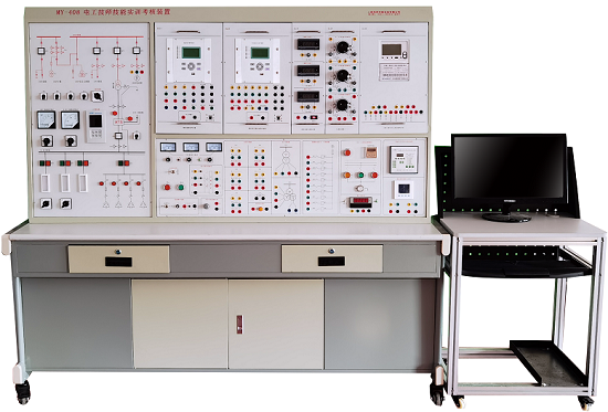 一、MY-408 電工技師技能實(shí)驗(yàn)裝置-是根據(jù)機(jī)械工業(yè)職業(yè)技能鑒定指導(dǎo)中心編寫的《電工技師培訓(xùn)教材》,綜合目前電工技師的培訓(xùn)內(nèi)容與方式,并結(jié)合了工業(yè)實(shí)際應(yīng)用和發(fā)展而研制的。本裝置能對(duì)供用電系統(tǒng)、電力系統(tǒng)繼電保護(hù)、變電所微機(jī)保護(hù)、微機(jī)保護(hù)功能測(cè)試、電力系統(tǒng)網(wǎng)絡(luò)監(jiān)控、電能計(jì)量和綜合自動(dòng)化系統(tǒng)進(jìn)行操作實(shí)訓(xùn)。裝置采用組件式結(jié)構(gòu),資源豐富,可擴(kuò)展性強(qiáng)。本裝置可供各職業(yè)院校實(shí)訓(xùn)教學(xué),也可作為企業(yè)、有關(guān)電工培訓(xùn)鑒定部門對(duì)電工技師培訓(xùn)、資格認(rèn)定設(shè)備。