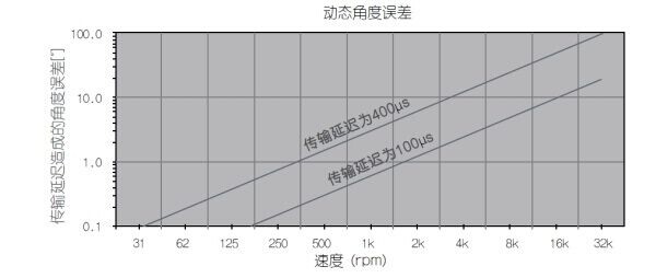 如剛才所說(shuō),磁性位置傳感器的傳輸延遲是固定的,而動(dòng)態(tài)角度誤差的值取決于傳輸延遲的時(shí)間和轉(zhuǎn)速。