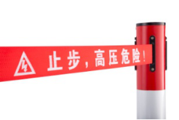 2.雙層防護警示帶,帶明顯警示標志及字樣,可自由伸縮5M,