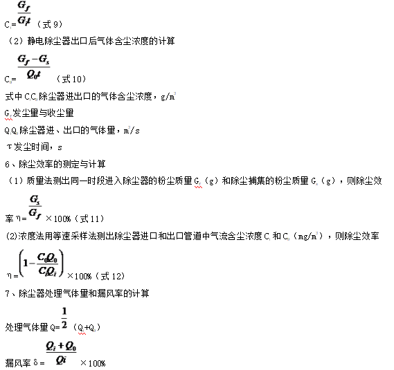 | 測定次數(shù) | 發(fā)塵量Gi/g | 發(fā)塵時間τ/s | 電場電壓 | 電場電流 | 有效驅(qū)進速度 | 除塵器進口氣體含塵濃度Ci(g/m3) | 收塵量Gs/g | 除塵器出口氣體含塵濃度Cj/(g/m3) | 除塵器效率η/% |