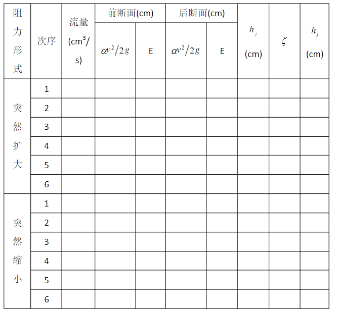 2.通過(guò)對(duì)圓管突擴(kuò)局部阻力系數(shù)的包達(dá)公式和突縮局部阻力系數(shù)的經(jīng)驗(yàn)公式的實(shí)驗(yàn)驗(yàn)證,分析突擴(kuò)與突縮圓管在相應(yīng)條件下的局部損失大小關(guān)系。